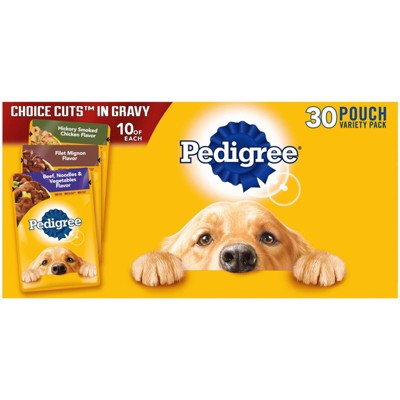Up to 15 cash back These Pedigree wet dog food options can be a good option to keep in the pantry to go along with dry food or as Pedigree dog treats on certain days. Feel free to give us a call at 7325491300.